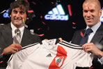 El astro francés Zinedine Zidane participó en forma sorpresiva de la presentación de la nueva camiseta de River Plate para sacarse el gusto de estar al lado de su ídolo Enzo Francéscoli.