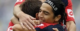 Por el lado de los locales, no supieron liquidar a un rival confundido y que otorgó muchos espacios para el contragolpe. Pudo convertir Bergessio, tras un centro hacia atrás de Menseguez, pero definió pifiado y sobre el final del primer tiempo, Aureliano Torres probó con un disparo desde lejos, que Caranta rechazó con sus puños, con gran reacción y una espectacular volada, hacia el corner.