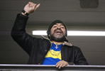 En pocos momentos del partido, Maradona se movió de su lugar. Solo la final se enchufó un poco más y se acercó al corralito del campo para dar indicaciones.