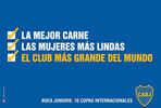 Los afiches hacen referencia a los 16 títulos internacionales conseguidos por Boca, lo que lo consagró como el nuevo Rey de Copas del mundo, por sobre Independiente, Milan y Real Madrid.