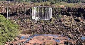 Debido a la sequía que azota el sur del Brasil y el nordeste de la Argentina, el río Iguazú baja con escaso caudal,por lo que el volumen de agua disminuyó en un 90% y las asombrosas caídas de sus 250 saltos se convirtieron en pequeños chorros. Los paseos náuticos ya fueron suspendidos. Mientras, los visitantes se sorprenden por el magro espectáculo.