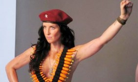 Bajo el eslogan "Comienza una revolución vegetariana", Lydia Guevara, de 24 años, aparecerá con la boina que popularizó su abuelo y con el torso desnudo, tan solo cubierto por un arnés cargado de zanahorias a modo de balas.