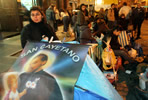 "Las mujeres venimos de día y los hombres, a la noche. Nos conocimos acá y nos hicimos amigos, porque todos venimos a pedir trabajo, y el santo no falla", dijo Carlos Salcedo, mientras amenizaba la espera con un mate caliente.