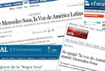 La mayoría de los medios de Latinoamérica tiene la noticia en primera plana en sus páginas web. Igual sucede en España, Italia y Alemania. Mercedes Sosa ícono mundial