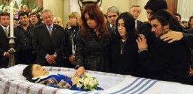 La presidenta Cristina Kirchner adelantó su regreso a Buenos Aires desde Río Gallegos y, tras permanecer en la Quinta de Olivos, se dirigió al Parlamento, donde en el Salón de los Pasos Perdidos son velados los restos de la cantante Mercedes Sosa.