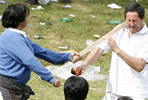 Tras los vergonzosos incidentes, la caravana ingresó a la Quinta 17 de octubre donde se realizó un tumultuoso acto de homenaje al ex presidente argentino