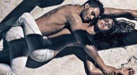 Fotografiados nuevamente por Steven Klein, artífice de las imágenes de su anterior campaña, la pareja posa sobre un suelo arenoso, untados completamente en aceite y luciendo las nuevas propuestas de la marca de ropa.
