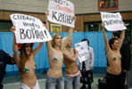 "¡No vendan sus votos!" gritaron las mujeres, quienes dijeron representar a un grupo llamado "Femen", mientras sostenían pancartas con el mensaje "Dejen de violar al país".