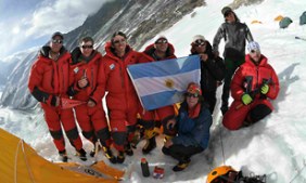 En una epopeya que coincide con la celebración del Bicentenario, la bandera argentina flameó en la cumbre del mundo a 8.848 metros sobre el nivel del mar en el monte Everest, cuando siete andinistas argentinos cumplieron hoy su cometido luego de dos meses de travesía.