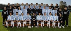 2da. Fila, en el medio, (de izquierda a derecha): Marcelo Dalto (Auxiliar de Utilería), Javier Vilamitjana (Preparador Físico), Javier Pastore, Martín Demichelis, Jonás Gutiérrez, Mariano Andújar, Sergio Romero, Diego Pozo, Mario Bolati, Martín Palermo, Juan Sebastián Verón, Luis García (Kinesiólogo) y Marcelo DAndrea (Auxiliar).
