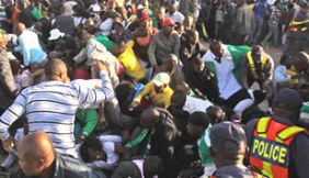 Ocurrió antes del amistoso Nigeria-Corea del Norte, cuando miles de hinchas que estaban fuera del estadio de Johannesburgo se avalanzaron sobre la policía