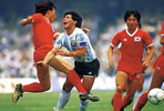 No jugaba al fútbol, sino que practicaba taekwondo, ese día pareció kung fu, declaró recientemente Maradona cuando habló sobre la agresiva entrada de Huh Jung-Moo, que todavía se recuerda.