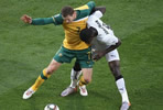 En una jugada, Australia se complicó la vida. Tras una gran acción individual de Gyan, Harry Kewell sacó un remate que buscaba la red con su mano y el árbitro no dudó: penal y roja. Gyan se hizo cargo y decretó el empate.