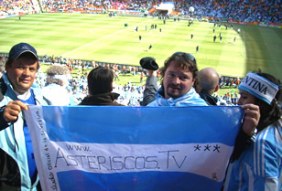 La tribuna argentina se hizo sentir durante todo el partido y también muchos argentinos aceptaron posar con la bandera de Asteriscos.Tv, presente en ese encuentro clave de la selección para estar casi en octavos de final del Mundial.