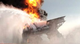 Veinte minutos más tarde, cuatro helicópteros de rescate despegaron rumbo a la zona. "He visto a 90 millas de distancia el resplandor de la plataforma en llamas. Cuando estábamos a media milla de la plataforma, podía sentir la intensidad de las llamas. " Miré a este gigante de metal ardiendo, era como mirarle la cara al diablo", relata el piloto Almerick Lim recuerda.