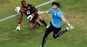 El retroceso de Forlán, para llevarle el balón a Suárez, no era la forma en que Uruguay podía llevar peligro hasta el arco de Kingson, y así los defensores ghaneses no tuvieron un trabajo de los más complicados.