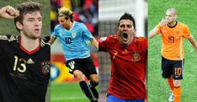 Por tercera vez en la historia el mundial terminó con más de un goleador. Thomas Mller, David Villa, Diego Forlán y Wesley Sneijder con 5 tantos los artilleros