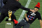 Ataviado con su habitual barretina, el saltador recorrió buena parte del terreno de juego y llegó hasta el lugar en el que se encontraba la Copa del Mundo destinada al ganador.