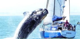 Una ballena austral de más de 40 toneladas atacó un yate que navegaba a diez metros de la costa de Ciudad del Cabo, Sudáfrica. Según el relato de los testigos, la pareja que iba a bordo habría hostigado al cetáceo.