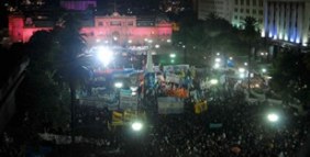 Militantes, funcionarios, legisladores, Madres y Abuelas de Plaza de Mayo se acercaron a las inmediaciones de la Casa Rosada con banderas y carteles de apoyo para la familia de la Presidente.