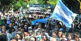 En otra muestra de apoyo al Gobierno, la CGT encabeza este mediodía una marcha para despedir los restos de Néstor Kirchner.