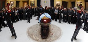 La presidenta argentina, Cristina Fernández, despide los restos de su marido y ex presidente, Néstor Kirchner, en Casa de Gobierno.