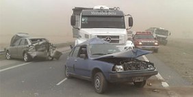 Se estima que entre 13 y 15 vehículos colisionaron en cadena, mientras se registraban vientos con ráfagas de hasta 80 kilómetros por hora, lo que le causó la muerte a por lo menos nueve personas, informaron fuentes de la policía de la provincia de Córdoba, pero se temía que el número de fallecidos podría aumentar.