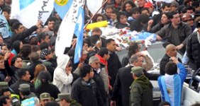 La Presidenta encabezó una caravana multitudinaria al cementerio de Río Gallegos. La gente acompañó con aplausos, cánticos, flores y carteles de apoyo