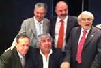 El apoyo lo dio su titular, Osvaldo Rial, quien en la foto aparece junto a Moyano, los ministros Tomada y De Vido, y el titular de la UIA, en la Conferencia fabril