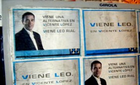 La candidatura se presentó con una campaña de afiches que primero anticipaban "Se viene Leo", y después develaron el nombre y la foto del joven dirigente.