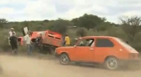Gordon, sin dudarlo, subió al volante, demoró unos minutos en agarrarle la mano al 147 y comenzó a acelerar para sacar con el auto a su camioneta, mientras una linga tiraba sin dar tregua.