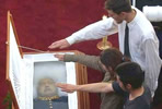 Una imagen del velatorio del ex dictador chileno Augusto Pinochet que recorrió el mundo entero fue capturada en una foto que muestra a tres jóvenes que realizan el saludo fascista frente al féretro.