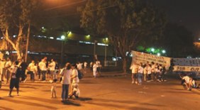 Hacia medianoche el grupo acampó en el portón de acceso, con mesas, sillas y reposeras. Los miembros de la Juventud Sindical de Camioneros disimularon su presencia vistiendo remeras verdes con inscripciones. Lo mismo ocurrió con otro grupo de apoyo kirchnerista.