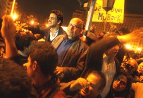 Mientras Mohammed ElBaradei caminaba hacia el centro de la plaza y estrechaba manos con algunos de los participantes, los manifestantes gritaban: "El pueblo quiere que el régimen caiga".
