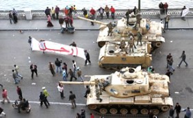 Mientras tanto, los tanques impidieron a algunos de los partidarios de Mubarak cruzar un estratégico puente que lleva a la plaza, epicentro de la rebelión.