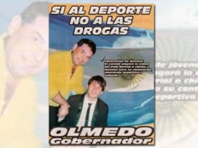Bajo el lema "Sí al deporte, no a las drogas", el legislador nacional Olmedo lanzó su campaña por su precandidatura a gobernador de Salta con afiches en donde se lo ve abrazado con el astro del Barcelona y de la Selección Nacional.