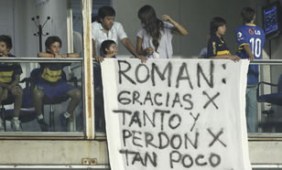 Con leyendas como "Falta magia, falta Román", "Román: gracias por tanto y perdón por tan poco", y "El romance nunca a terminar", un sector de la parcialidad auriazul le brindó su apoyo al jugador.