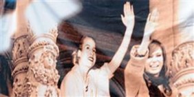 La Asociación Madres de Plaza de Mayo, encabezada por Hebe de Bonafini, homenajeó hoy a Cristina Kirchner en el marco del Día Internacional de la Mujer con una gigantografía en la cual aparece junto a Eva Duarte de Perón en un fotomontaje donde ambas levantan su brazo saludando desde el balcón de Casa de Gobierno.
