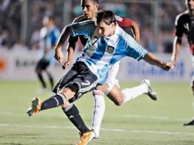 La selección argentina goleó 4 a 1 a la débil Venezuela en un partido que sirvió para inaugurar el estadio del Bicentenario en San Juan.