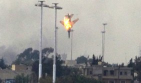 Un avión militar fue derribado este sábado por la mañana en Bengasi, bastión de la rebelión en el este de Libia, y cayó a tierra, constataron algunos periodistas de medios extranjeros. El aparato llevaba varios minutos sobrevolando la ciudad. Su parte trasera derecha estaba en llamas. Se estrelló en la ciudad en una zona residencial del sur de Bengasi provocando una explosión seguida de una humareda.