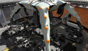 El problema eran las piernas que lo mantenía en el aire. Tenerlas tan cerca del escenario obstruía la vista. Entonces, en vez de pensar: ¿Cómo hago que estas piernas sean menos intrusas?, me di cuenta que teníamos que hacerlas tan grandes e invasivas que se conviertan parte de la construcción. Cuando le mostré a la banda los bocetos, ellos estuvieron de acuerdo, lo que me dio paso a contactarme con Mark Fisher.