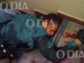 El asesino fue herido por un policía y, cuando se vio acorralado, se pegó un rito en la cabeza y cayó sobre la misma escalera por la que intentaba escapar (foto).