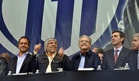 Fuerte presencia de dirigentes en el acto de la CGT junto a Moyano. En el palco estuvieron el gobernador Daniel Scioli y el gabinete nacional completo