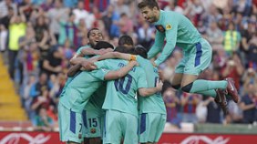 El Barcelona se proclamó campeón de la Liga española de fútbol por vigesimoprimera ocasión y por tercer año consecutivo, con un empate por 1-1 en el campo del Levante, en la 36ª jornada del torneo, a dos del final.