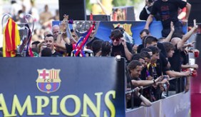 El argentino fue el protagonista de los festejos del Barcelona ganador de la Champions. El equipo transitó las calles de la ciudad hasta llegar al Camp Nou