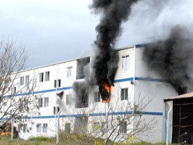 Varias dotaciones de bomberos se trasladaron a la zona para controlar las llamas en uno de los edificios del complejo tomado hace dos meses.