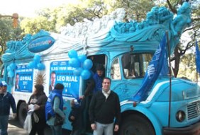 Al frente de un "Colectivo Militante", el candidato a intendente del Frente para la Victoria, Leo Rial, recorre las calles de las distintas localidades del municipio de Vicente López y despierta gran curiosidad entre los habitantes de ese partido del conurbano norte.