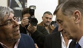 El candidato presidencial Hermes Binner se reunió con el titular de la CGT, pero dijo que lo hizo a título institucional y no por buscar "la foto"