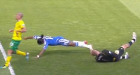 Fue en un partido de la Liga inglesa, el choque fue tremendo y el futbolista quedó tendido en el piso inmóvil. Fue internado y está mejor. Vea el video