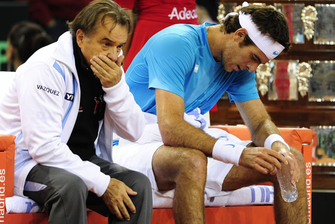Del Potro no tuvo resto físico en el quinto set y perdió ante el número cinco del mundo. España gana la final 2 a 0. Este sábado se juega el dobles y puede ser decisivo